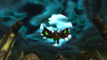 Ilidan Stormrage on summit of the Blackness Temple holding the Skull of Gul'dan.